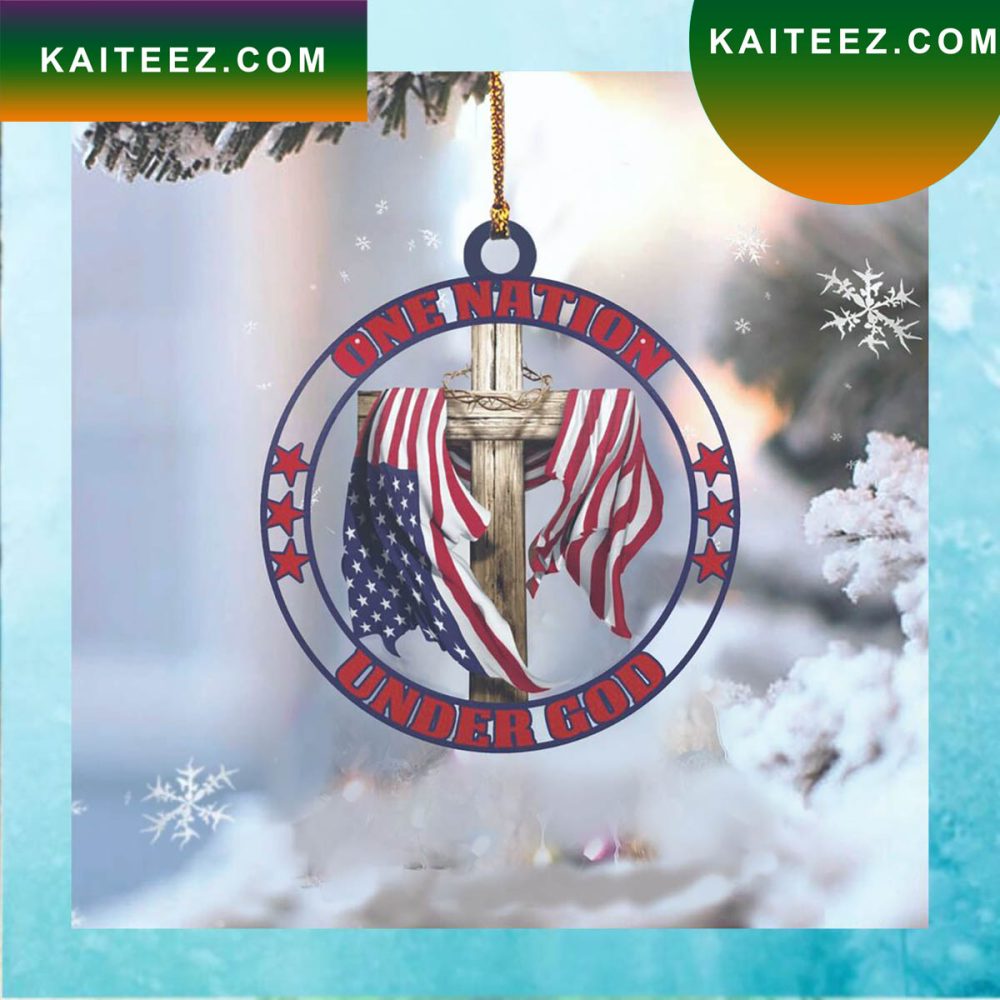 Be the first to review “Cross One Nation Under God American Flag Patriotic Christmas Ornament”