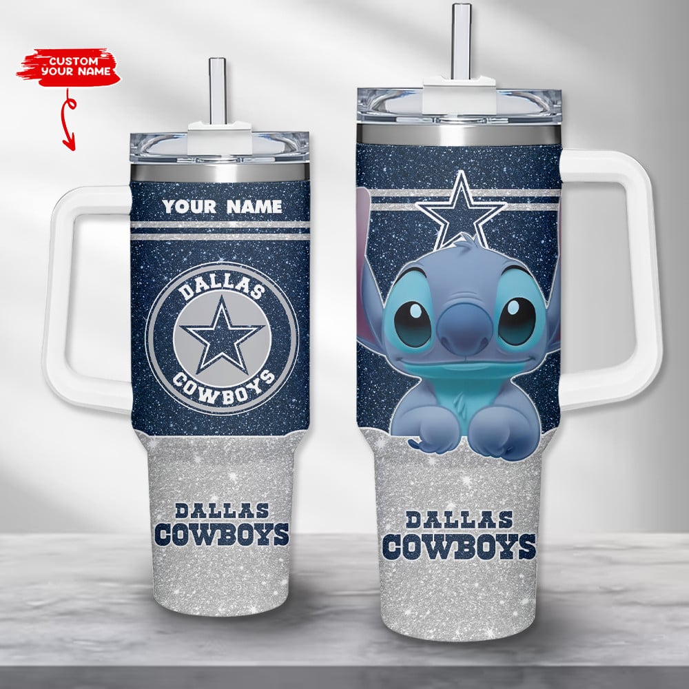 Details: Stay refreshed all day long with the Dallas Cowboys NFL Custom Stanley Quencher 40oz Stainless Steel Tumbler With Handle. This tumbler features a convenient handle for easy carrying and a leak-proof lid to prevent spills. The sleek stainless steel design keeps your drinks hot or cold for hours, perfect for taking with you on outdoor adventures.