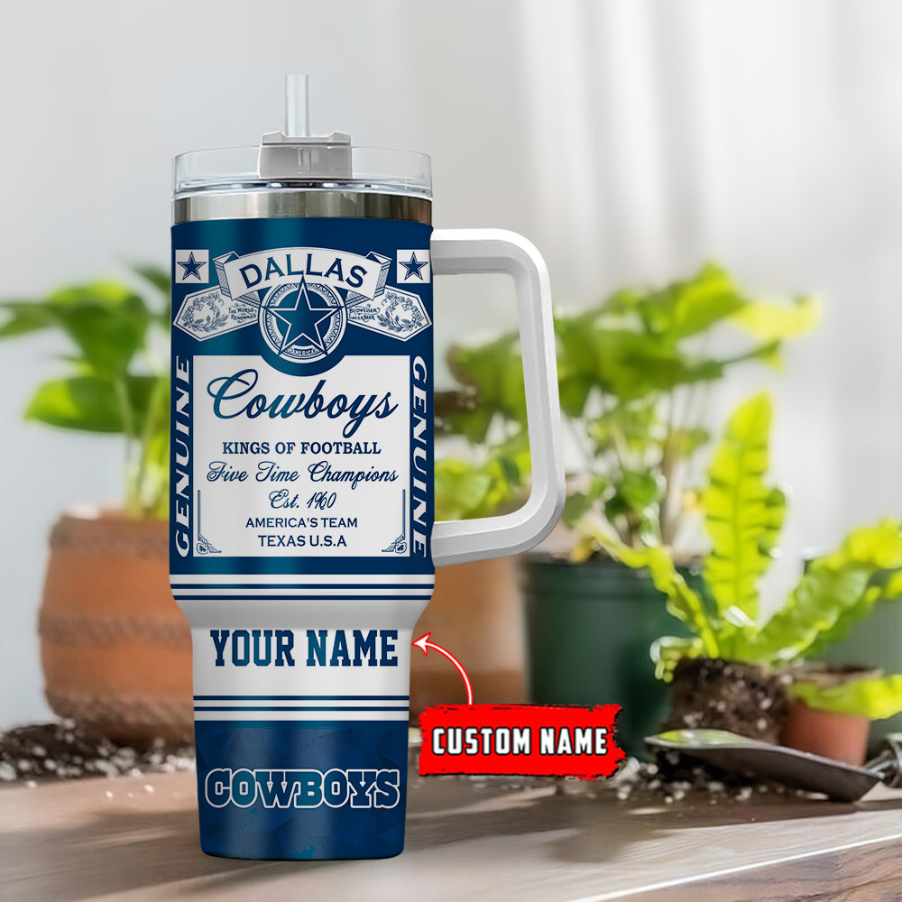 Details: Show off your love for the Dallas Cowboys with this custom 40oz stainless steel tumbler featuring a convenient handle for easy carrying. Keep your drinks hot or cold for hours while enjoying the great outdoors.