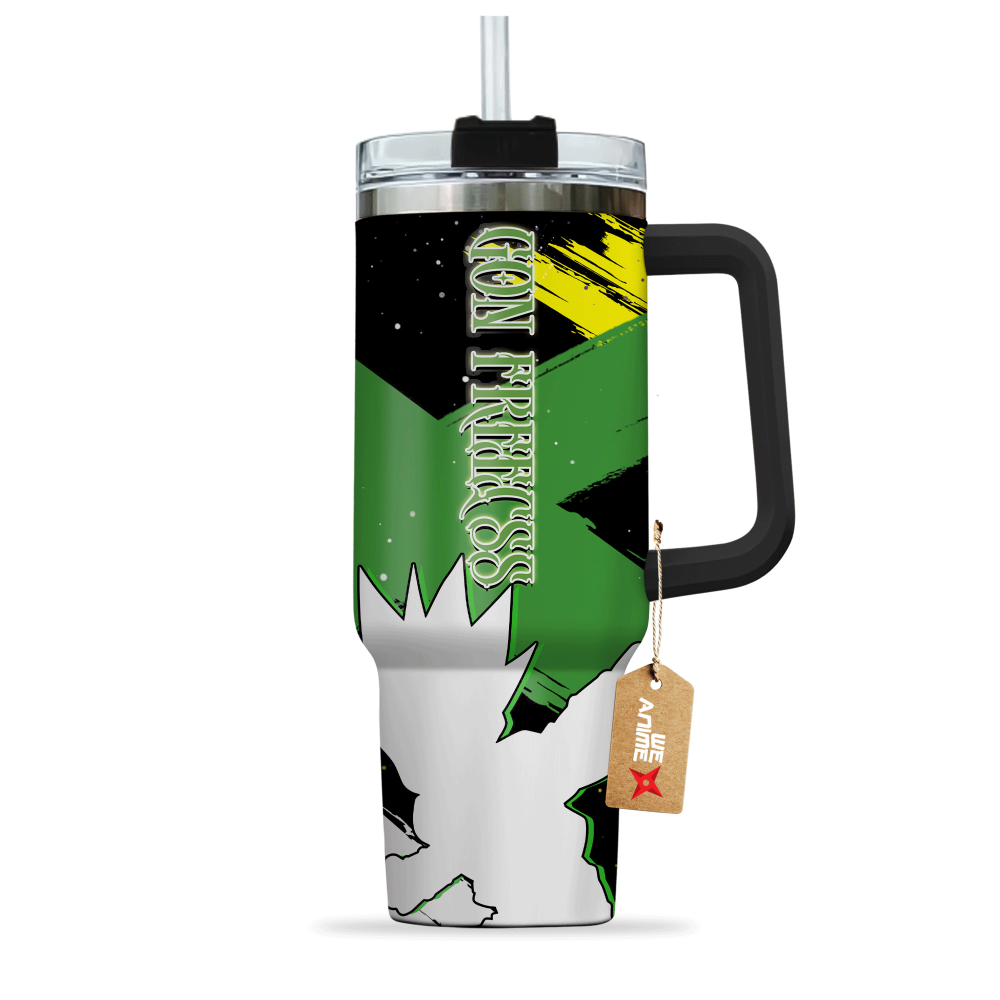 Details: Show off your love for anime with this custom Stanley Quencher 40oz stainless steel tumbler featuring Gon Freecss from the popular series Hunter x Hunter. A perfect accessory for on-the-go hydration, this tumbler comes with a handle for easy carrying and a secure lid to prevent spills.