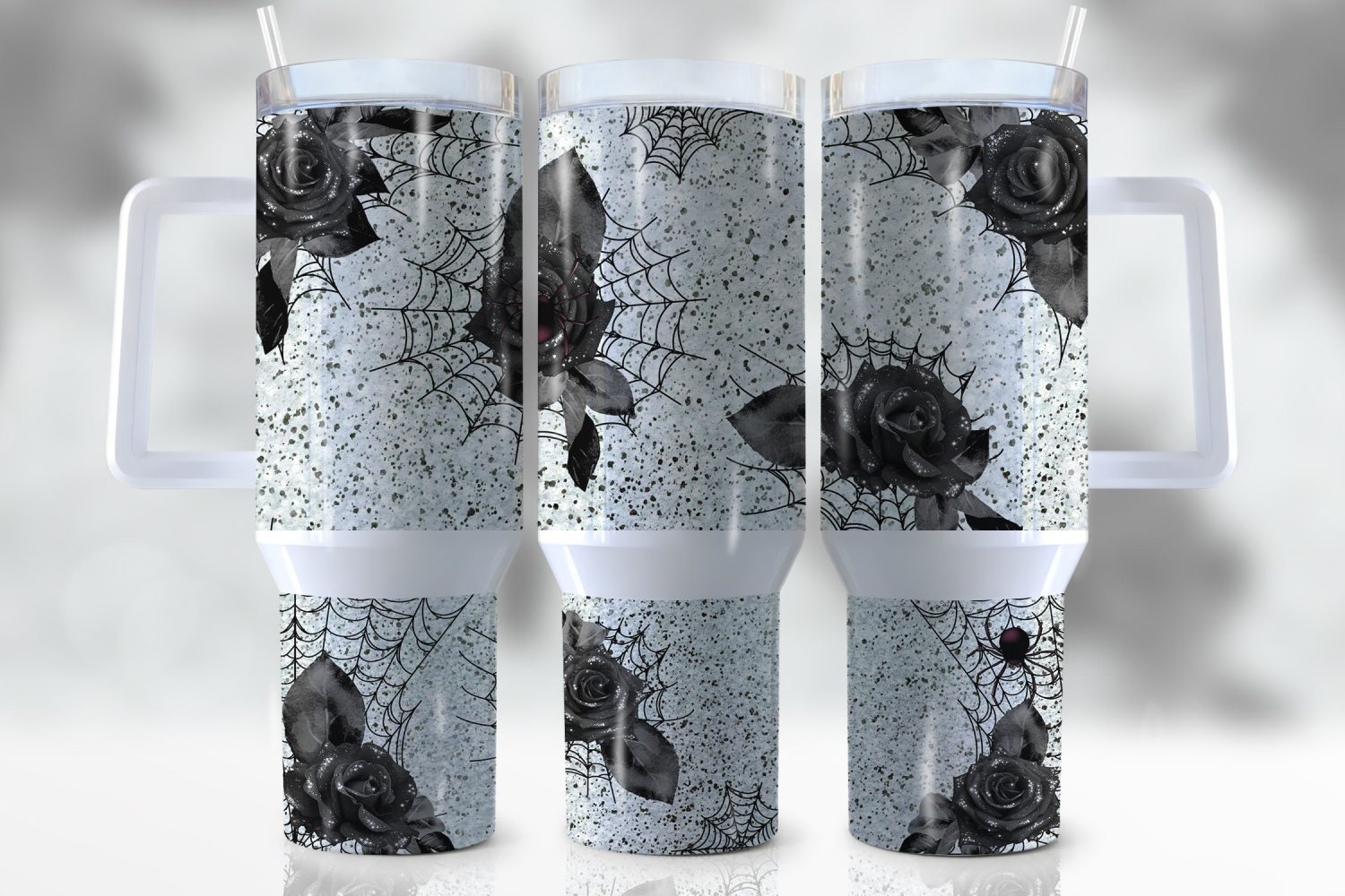 #gothic, #rose, #spider web, #custom, #stanley quencher, #stainless steel, #tumbler, #40oz, #handle