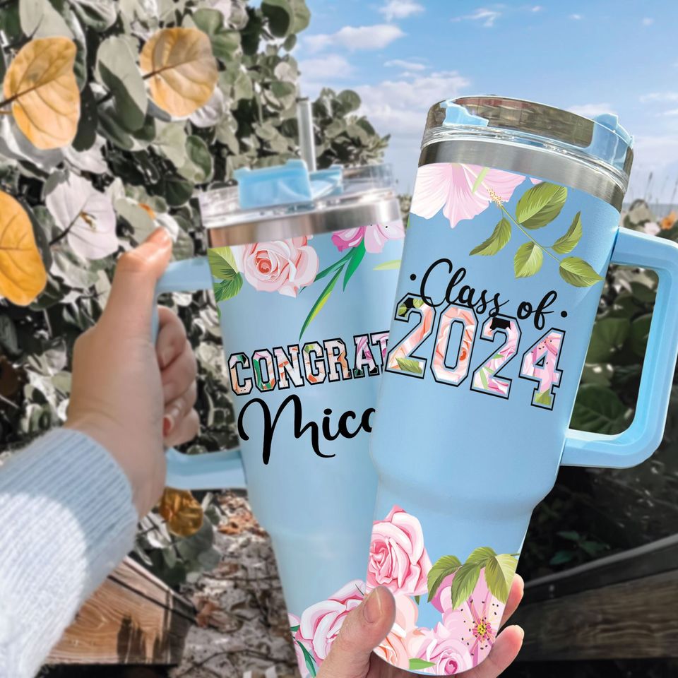 Details: Celebrate your big accomplishment with the Graduation Custom Stanley Quencher 40oz Stainless Steel Tumbler. This durable and stylish tumbler features a custom design to help you remember this important milestone. Crafted from high-quality stainless steel, it will keep your drinks hot or cold for hours while you savor the great outdoors. With its large capacity, you’ll have plenty of refreshment to fuel your next adventure.