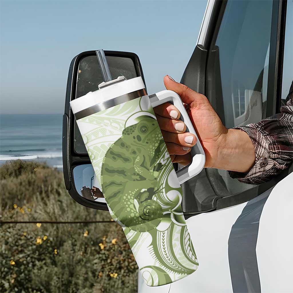Details: Bring a touch of nature with you wherever you go with this Green and White Hawaii Chameleon Plumeria Polynesian Tribal Art Custom Stanley Quencher 40oz Stainless Steel Tumbler with Handle. Decorated with vibrant colors and intricate designs inspired by the beauty of Hawaii, this tumbler is not only visually stunning but also keeps your drinks hot or cold for hours. The convenient handle allows for easy carrying, making it the perfect accessory for your outdoor adventures.