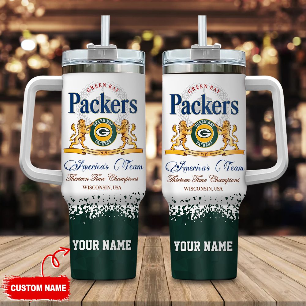 Details: Showcase your love for the champions with this Green Bay Packers NFL Champions Modelo Custom Stanley Quencher Tumbler. This 40oz stainless steel tumbler features a sturdy handle for easy transport and a sleek design to keep your beverage at the perfect temperature.