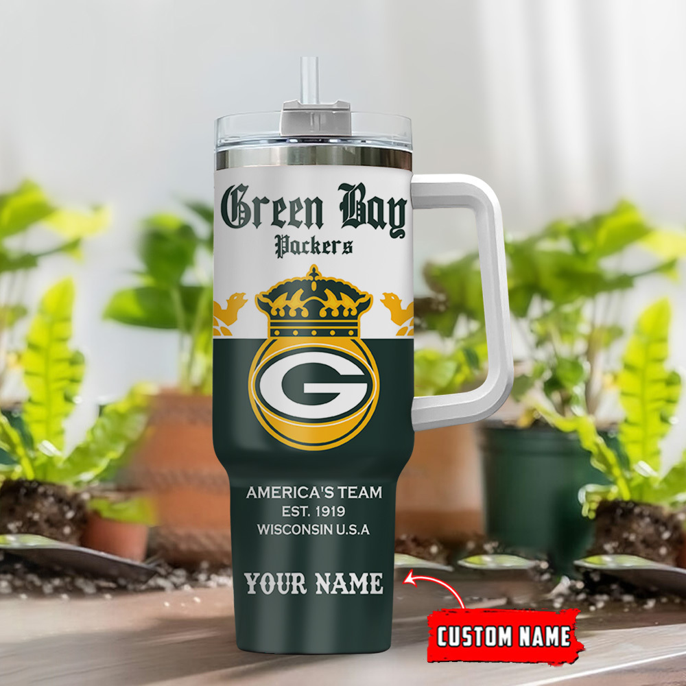 Details: Keep your drinks icy cold and show your support for the Green Bay Packers with this custom Stanley Quencher 40oz stainless steel tumbler. The durable construction and insulated design make it perfect for outdoor adventures and tailgating parties. The package also includes a convenient handle for easy carrying.