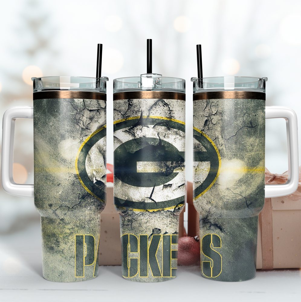 #Green Bay Packers, #NFL, #custom tumbler, #Stanley Quencher, #stainless steel, #handle, #team spirit, #outdoor, #adventures, #picnic