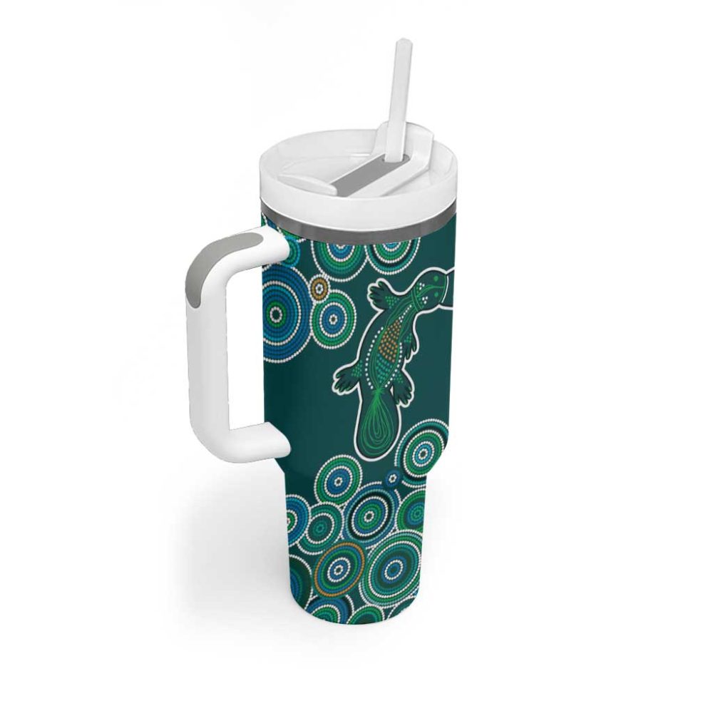 #Green Platypus, #Aboriginal Art, #Custom, #Stanley Quencher, #Stainless Steel, #Tumbler, #Handle