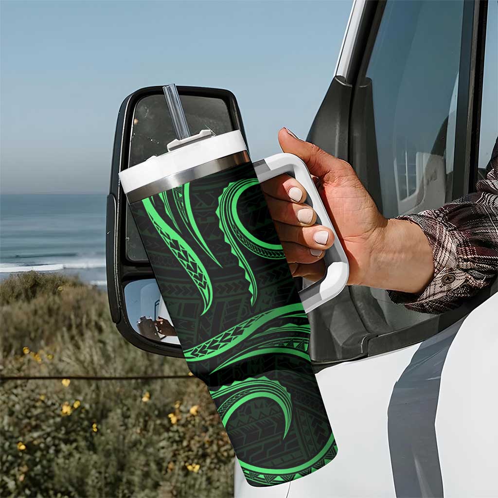 Details: Get in touch with Mother Nature while on the go with this stunning custom Guam coat of arms Stanley Quencher stainless steel tumbler. With images of seals, coconut palm, friars point and boats reminding you of the stunning natural beauty of Guam, this tumbler is the perfect companion for your outdoor adventures.
