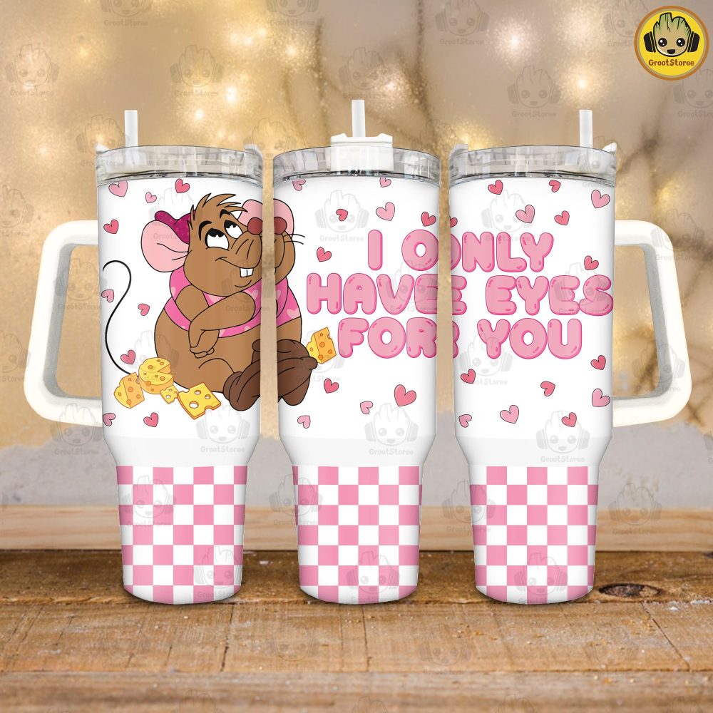 Details: Bring a touch of magic to your outdoor adventures with the Gus Cinderella Valentines Gift Disney Cartoon Custom Stanley Quencher Stainless Steel Tumbler. This 40oz tumbler features a charming design of Gus from the beloved Disney cartoon Cinderella, making it the perfect gift for Disney fans.