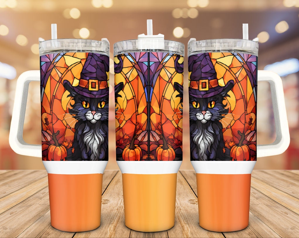 Details: Celebrate the spooky season with our Halloween Cats Custom Stanley Quencher 40oz Stainless Steel Tumbler! Featuring a sleek design with a convenient handle, this tumbler is perfect for keeping your drinks hot or cold while on the go. The adorable Halloween cats design adds a festive touch to your daily routine.