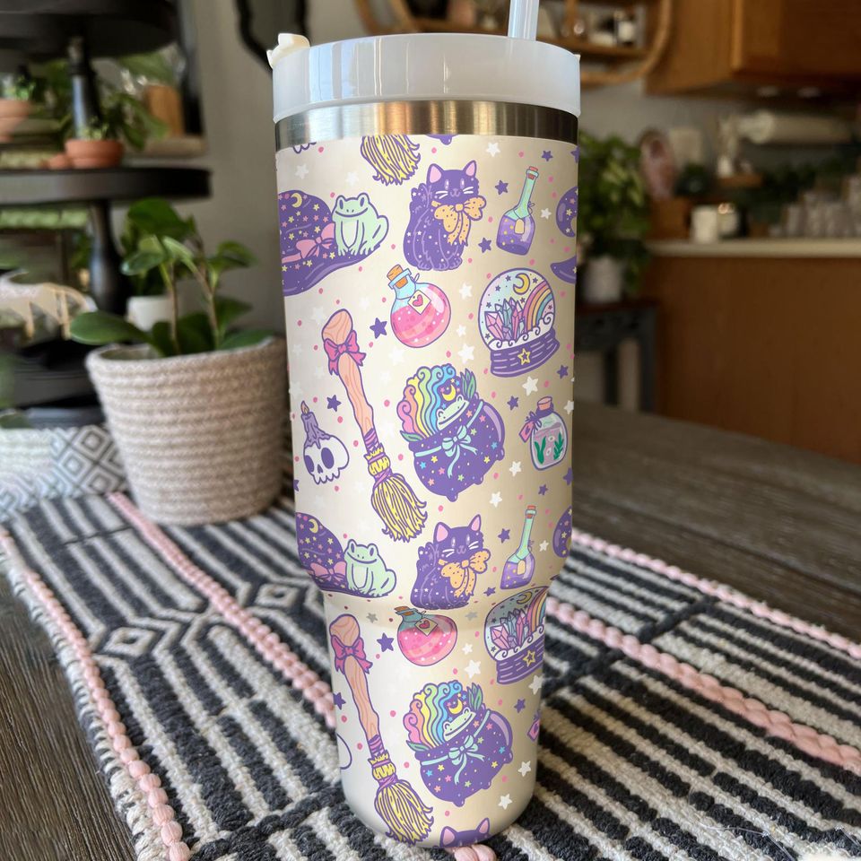 Details: Enjoy your favorite brew or chilled beverage in creepy style with this Halloween Custom Stanley Quencher Stainless Steel Tumbler. The 40oz capacity gives you ample drink storage while the durable construction will keep your beverages at the perfect temperature for longer. Featuring a unique Halloween design, this tumbler will definitely stand out in any party or gathering.