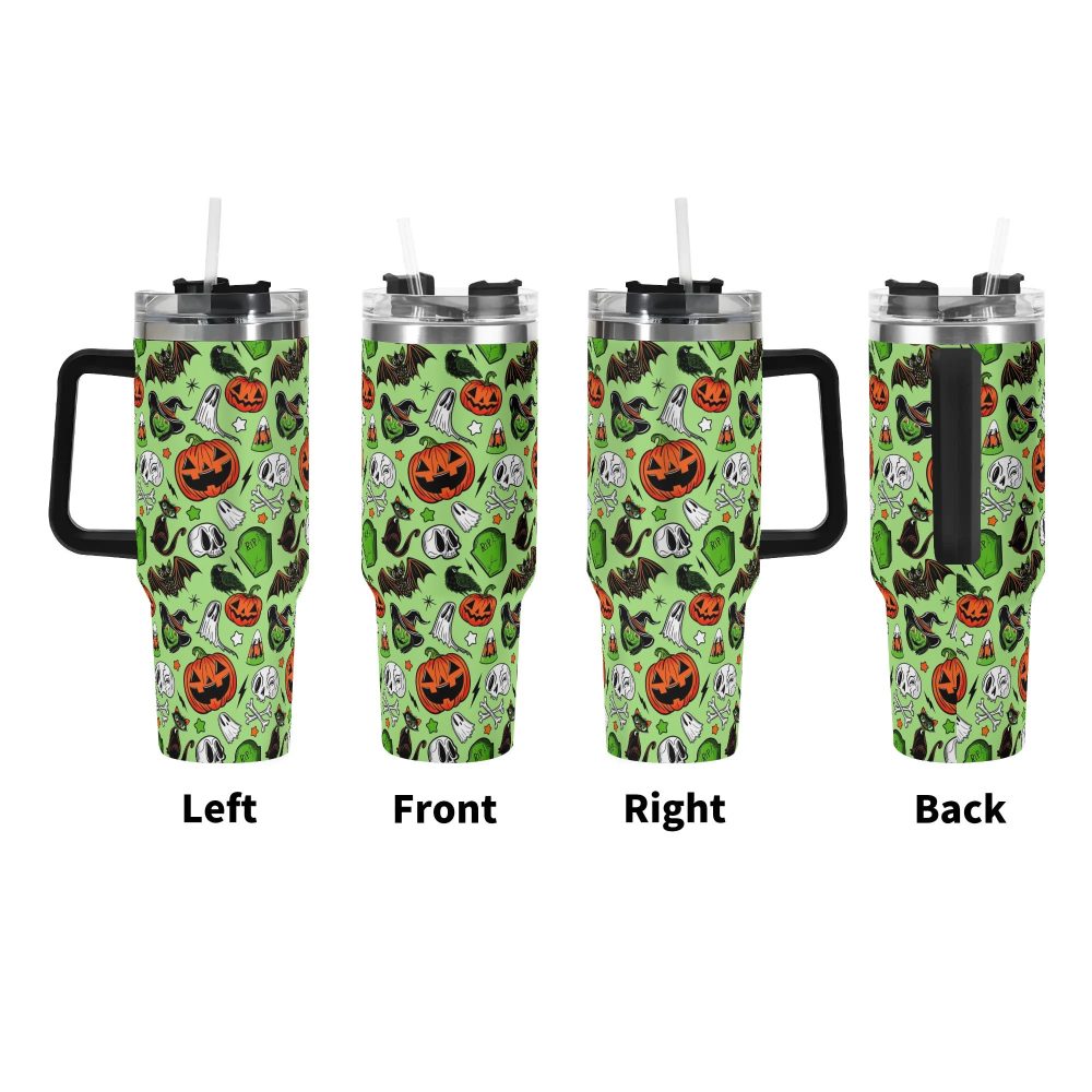 Details: Celebrate Halloween forever with this spooky custom Stanley Quencher 40oz Stainless Steel Tumbler with handle. Perfect for keeping your drinks at the desired temperature while looking stylish and season-appropriate for the spooky holiday.