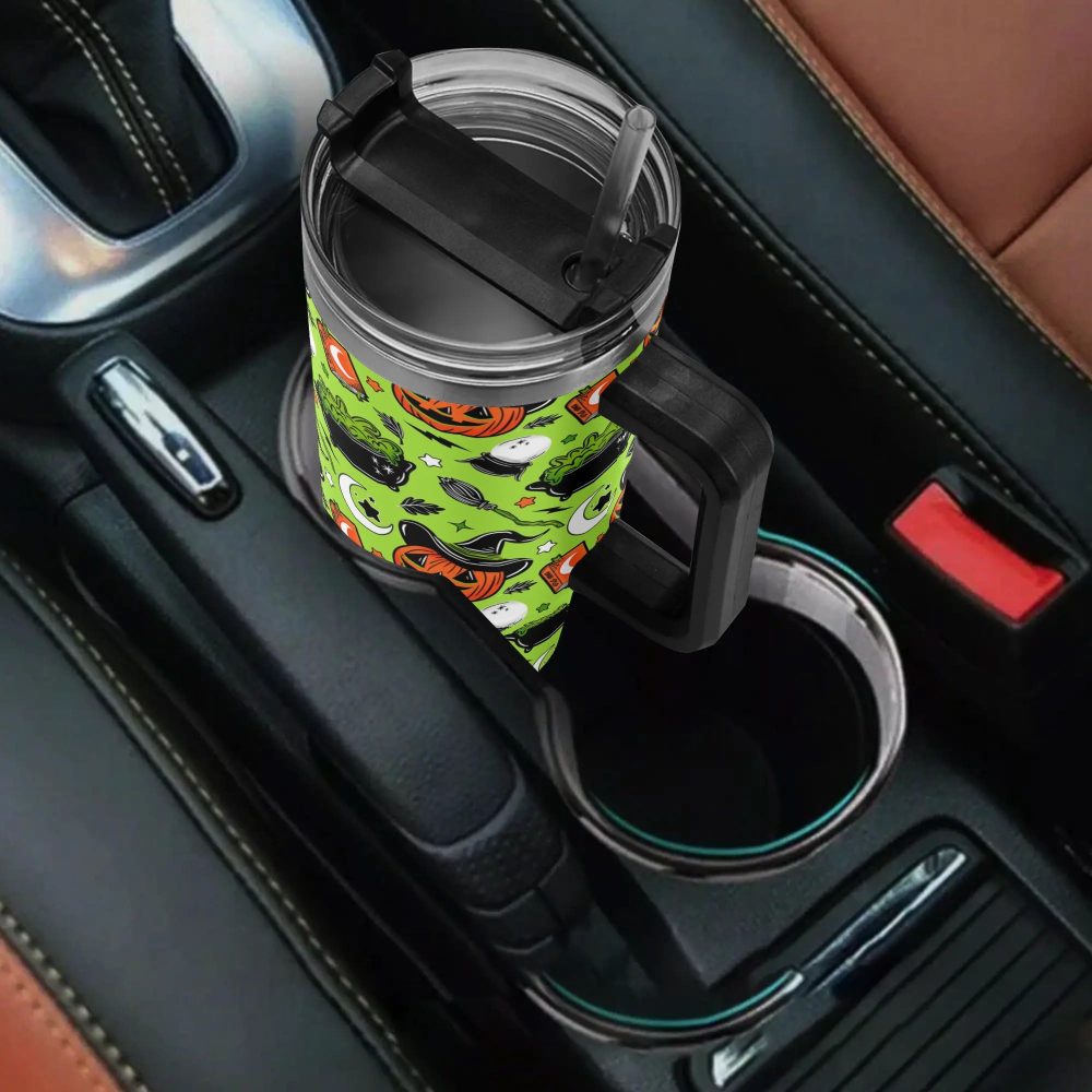 #halloween, #pumpkin, #witch, #stanley, #quencher, #40oz, #stainless steel, #tumbler, #handle