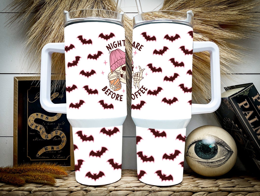 #Halloween, #Skull, #Bats, #Custom, #Steel tumbler, #40oz, #Handle