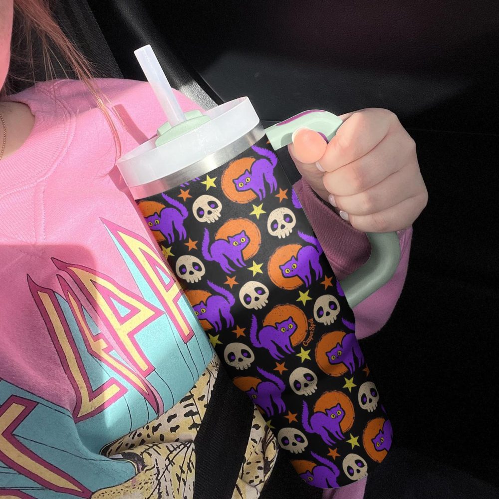 #Halloween, #spooky night, #cats, #custom tumbler, #Stainless steel, #40oz, #durable, #handle