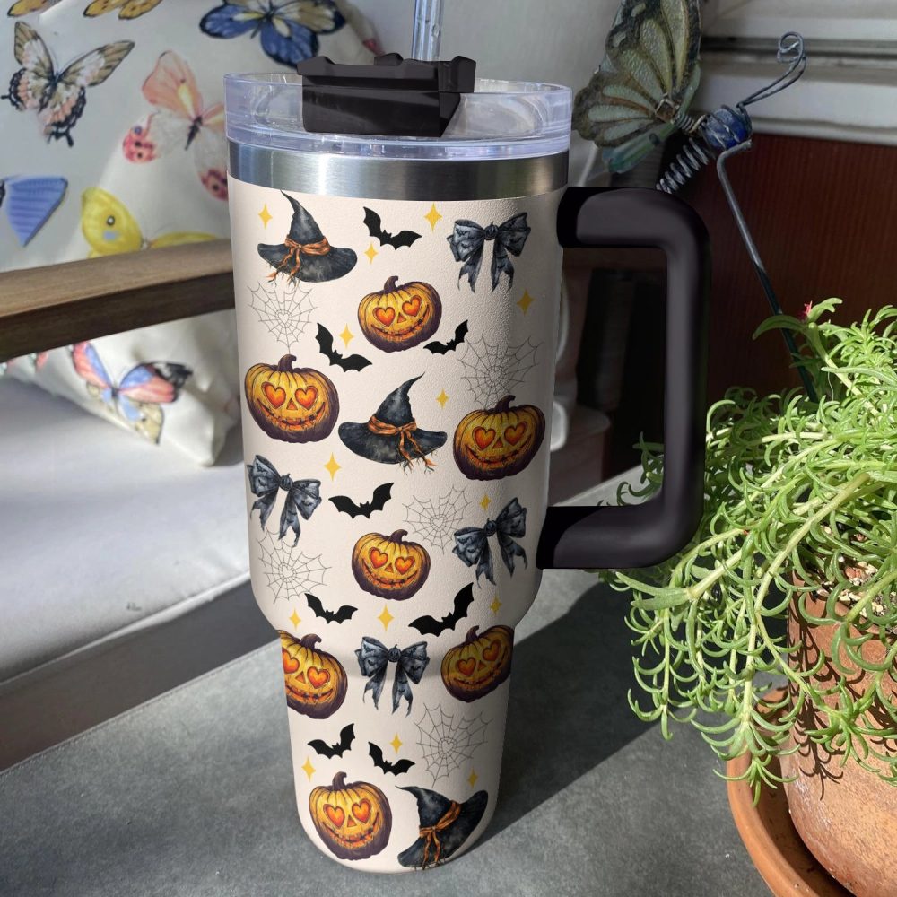 #Halloween, #spooky, #pumpkin, #Stainless Steel, #tumbler, #handle
