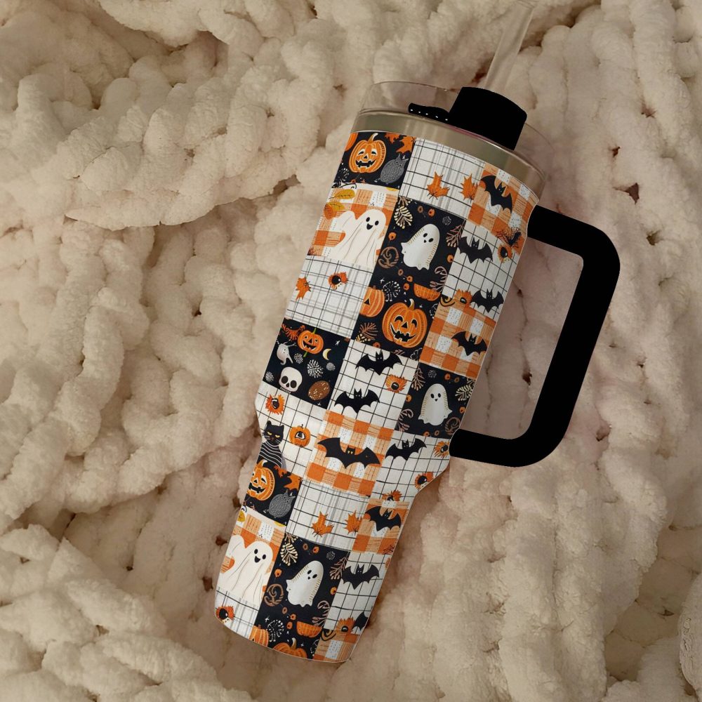 Details: Get into the Halloween spirit with this Spooky Pumpkin Patch custom Stanley Quencher 40oz stainless steel tumbler with handle. Perfect for keeping your drinks hot or cold while out exploring fall’s most vibrant colors. This tumbler is great for nature enthusiasts and spooky season lovers alike!