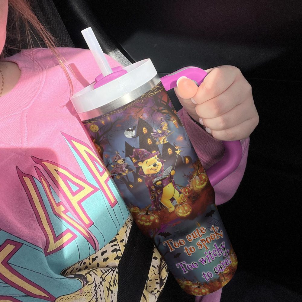 Details: Get into the Halloween spirit with this too cute to spook, too witchy to care custom Stanley Quencher 40oz stainless steel tumbler with handle. Perfect for taking hot or cold beverages on the go while staying stylish and environmentally friendly.
