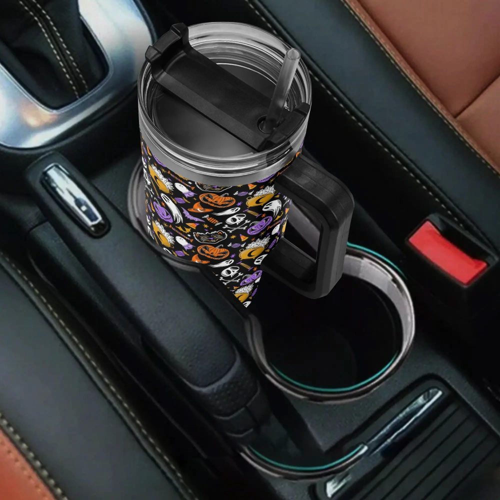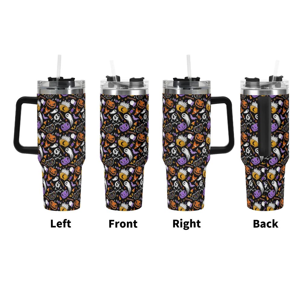 #Halloween, #trick or treat, #spooky, #custom, #Stanley Quencher, #40oz, #stainless steel, #tumbler, #handle