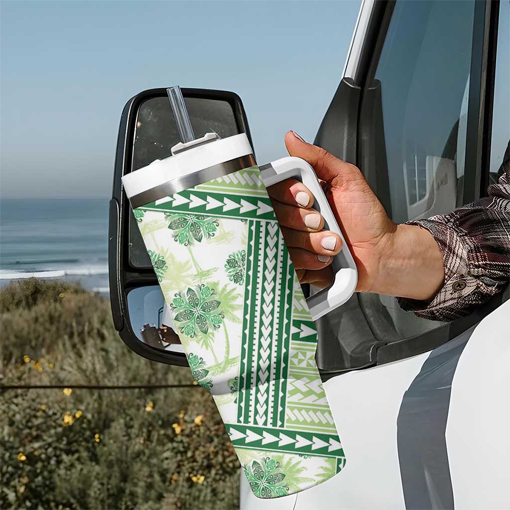 Details: Embrace the beauty of Hawaii with this stunning olive green quilt Kakau Polynesian design on a custom Stanley Quencher stainless steel tumbler. Keep your drinks at the perfect temperature while showcasing your love for nature and culture.