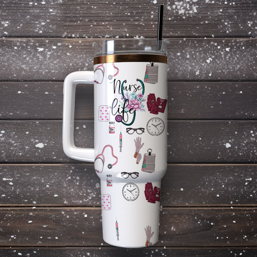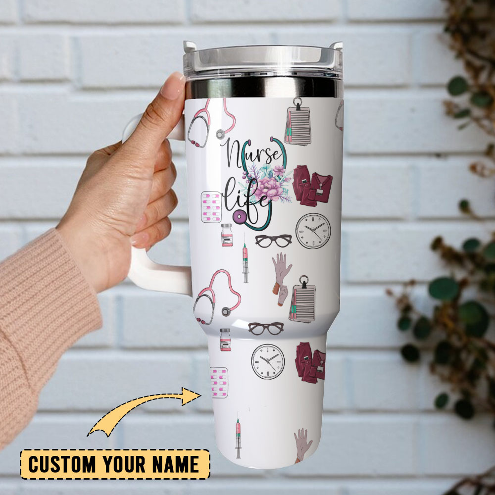 #nature, #heart flower, #nurse life, #custom, #Stanley Quencher, #stainless steel, #tumbler, #40oz, #handle
