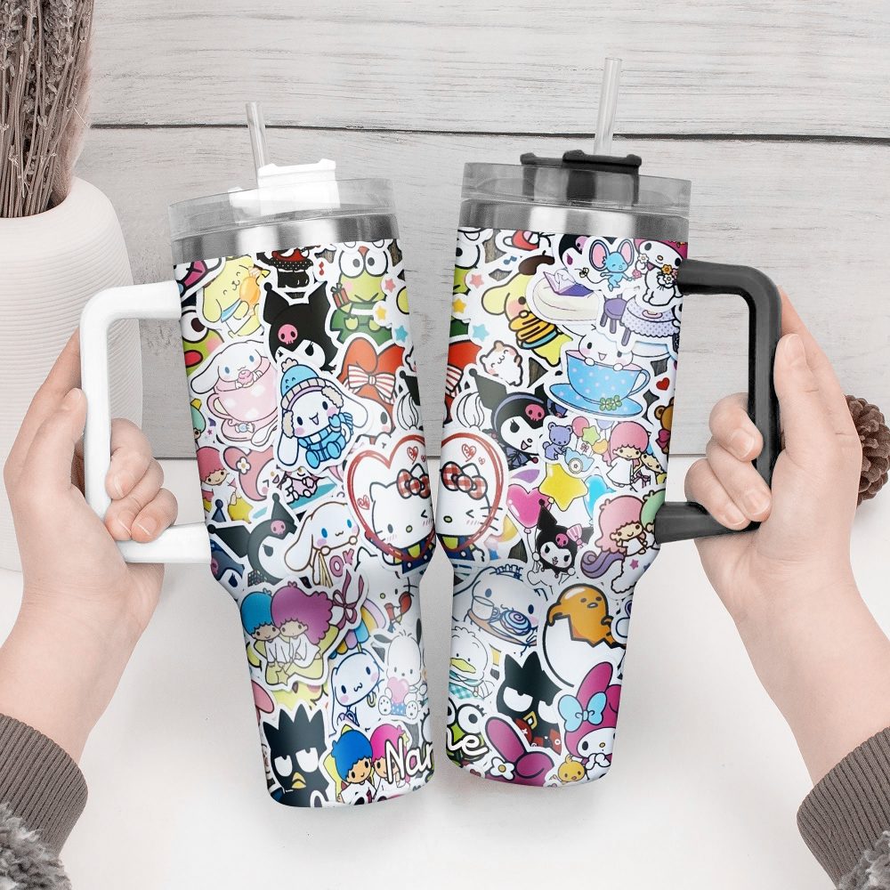 Details: Introducing the cute and charming Hello Kitty Cartoon Custom Stanley Quencher 40oz Stainless Steel Tumbler with Handle! This adorable tumbler features a delightful Hello Kitty design, making it the perfect companion for any nature lover. Whether you’re out on a hike, camping trip, or just enjoying a day in the park, this tumbler will keep your drinks hot or cold for hours on end. Made with durable stainless steel, it’s built to withstand even the most rugged outdoor adventures. Take a sip of nature with Hello Kitty by your side with this charming tumbler.