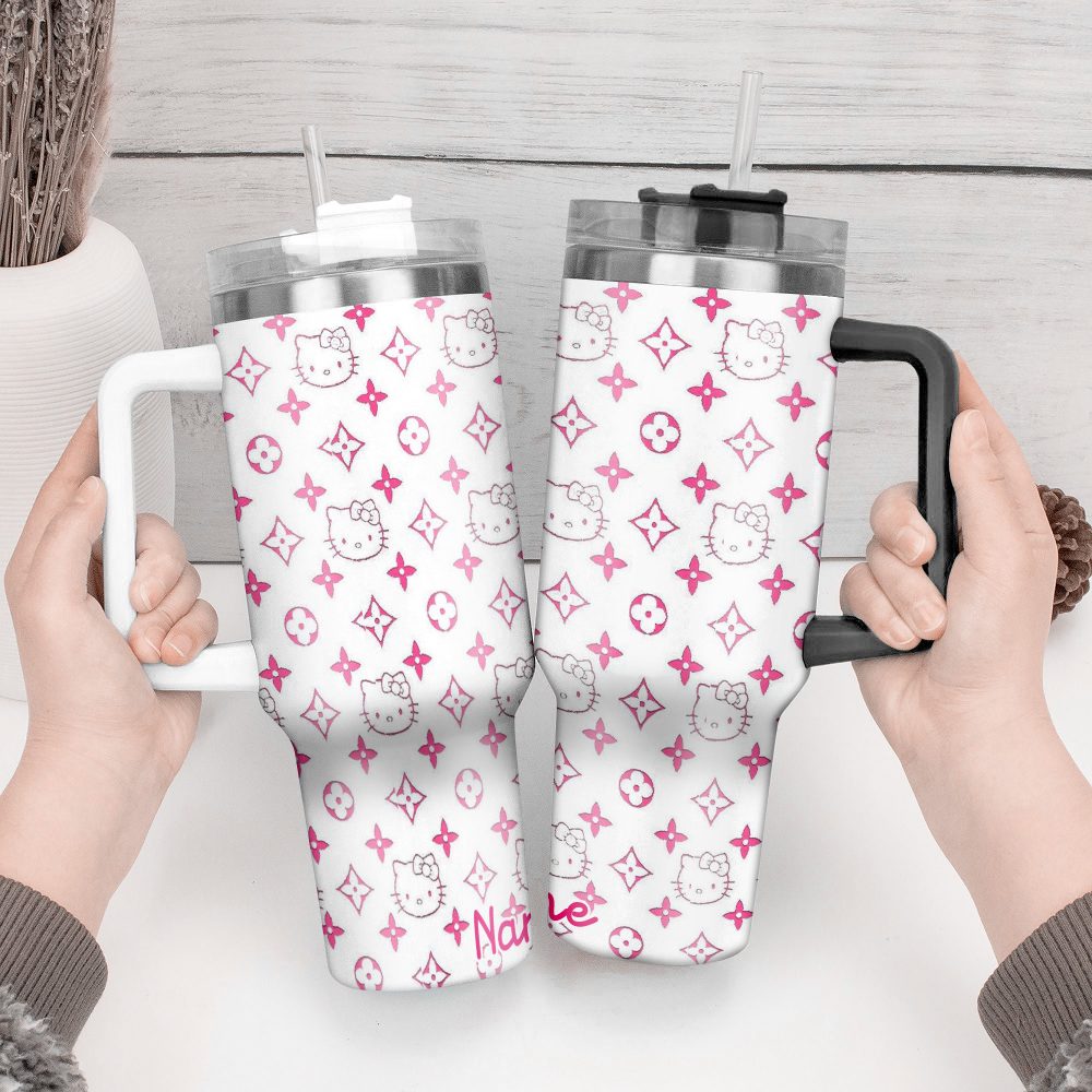Details: This custom Stanley Quencher 40oz stainless steel tumbler featuring the adorable Hello Kitty cartoon design is the perfect companion for all your outdoor adventures. Made with durable and high-quality stainless steel, this tumbler not only keeps your drinks hot or cold for hours but also adds a touch of cuteness to your daily routine. The convenient handle makes it easy to carry while on the go, and the secure lid ensures no spills while immersed in nature. Stay hydrated in style with this charming Hello Kitty tumbler that showcases your love for the environment and wildlife.
