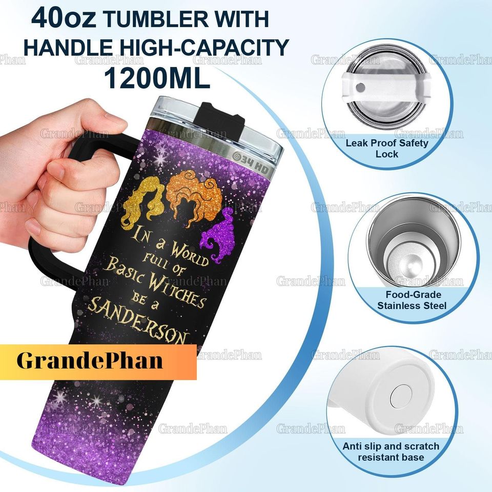 Details: Bring your Hocus Pocus movie marathon outdoors with this custom Stanley Quencher tumbler. This 40oz stainless steel tumbler is perfect for keeping your drinks hot or cold while enjoying nature’s beauty. The durable construction ensures it can withstand any outdoor adventure.