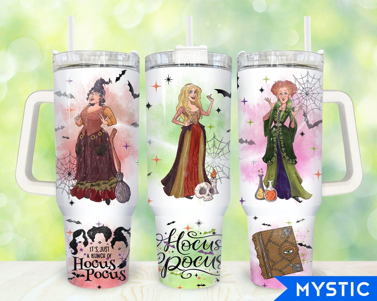 Details: Stay hydrated in style with this Hocus Pocus movies inspired custom 40oz stainless steel tumbler featuring a unique design with vibrant colors. The convenient handle makes it easy to carry on your outdoor adventures and the advanced insulation will keep your drinks at the perfect temperature for longer.