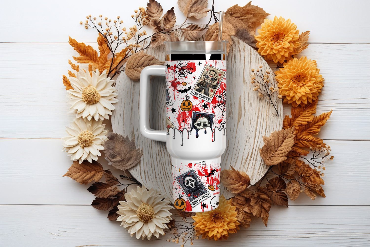 #horror movie characters, #custom, #Stanley Quencher, #40oz, #stainless steel, #tumbler, #handle