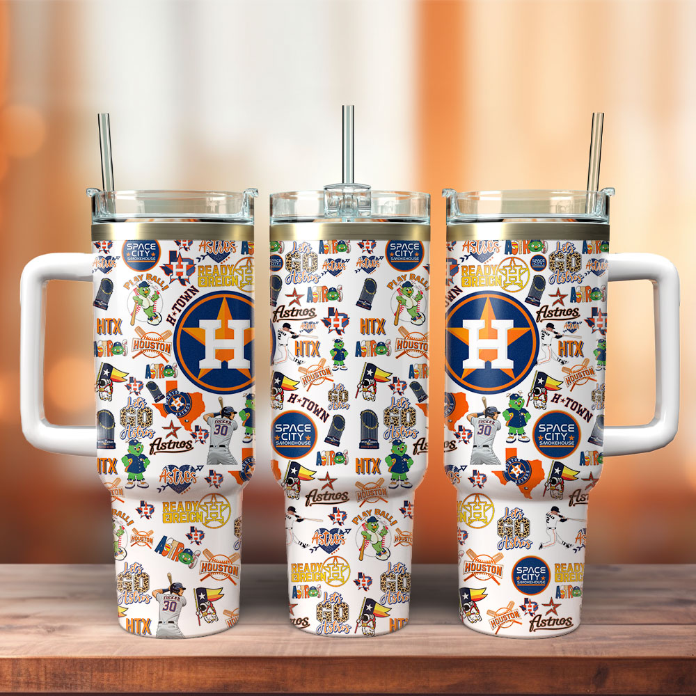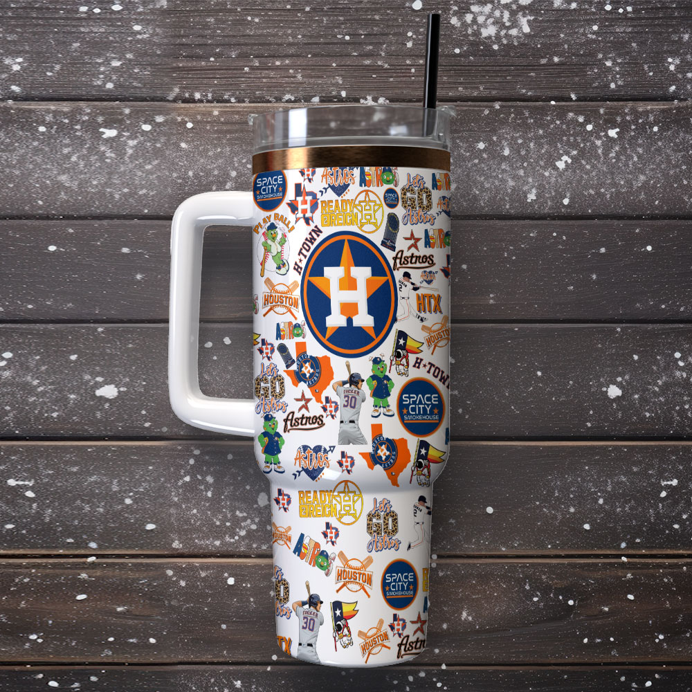Details: Show off your team pride and stay hydrated with this Houston Astros themed stainless steel tumbler! The sleek design features a convenient handle for easy carrying and a 40oz capacity to keep you fueled up during the game or any outdoor adventure.