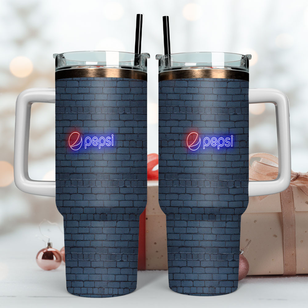 Details: Keep your favorite Pepsi drinks nice and cold with this custom Stanley Quencher tumbler. Made from durable stainless steel and equipped with a convenient handle for easy carrying, this 40oz tumbler is the perfect companion for your outdoor adventures. Enjoy your refreshing beverages surrounded by nature while supporting sustainability by using a reusable tumbler.