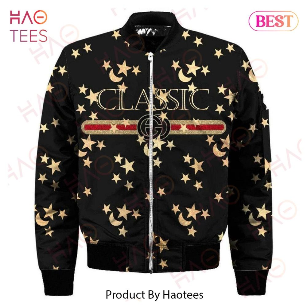 Be the first to review “Stylish Star Pattern Bomber Jacket – Classic Black & Gold Design By Haotees”
