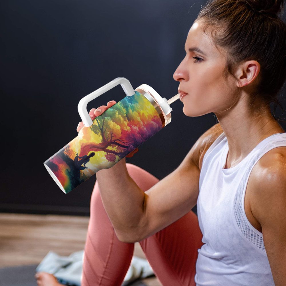 Details: Immerse yourself in the serene beauty of nature with our Tree of Harmony of the Soul Custom Stanley Quencher 40oz Stainless Steel Tumbler With Handle. This unique tumbler features a vibrant design of intricately entwined trees, symbolizing the harmony and interconnectedness of the natural world.